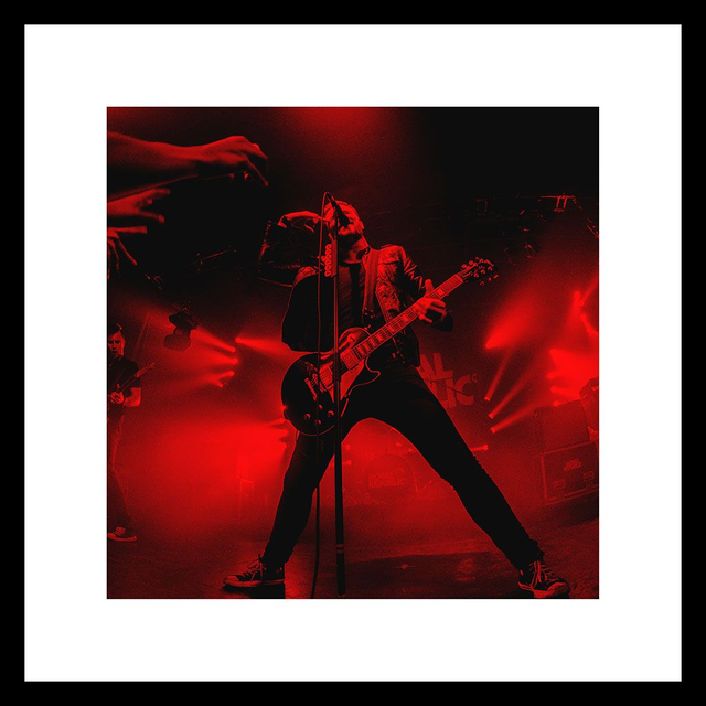 Tirage signé 31x31cm noir & rouge sur papier Baryta Hahnemühle 315g + cadre 40x40 cm noir + passe partout 30x30cm